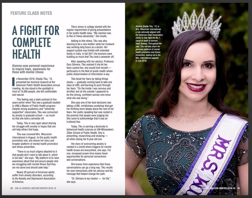 A Fight for Complete Health Alumna uses personal experience to inspire hope, awareness for those with mental illness. Shailja TikuAugust 13, 2025 Facebook0 Twitter Pinterest0 0 Likes
